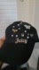 Stylish black cap featuring Juicy logo and decorative embellishments. Perfect for adding flair to any outfit.
