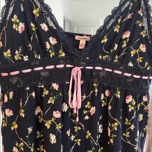Elegant top with floral design and lace detailing. Perfect for stylish outings. Sleeping top. Never washed. Like new.