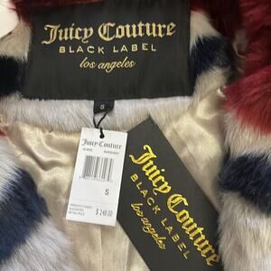 Juicy Couture Black Label Burgundy Stripe Faux Fur Button Coat Size Small