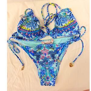 Juicy Couture Black Label Paisley Park Beaded Bikinis 2pcs XS Swim Summer Miami