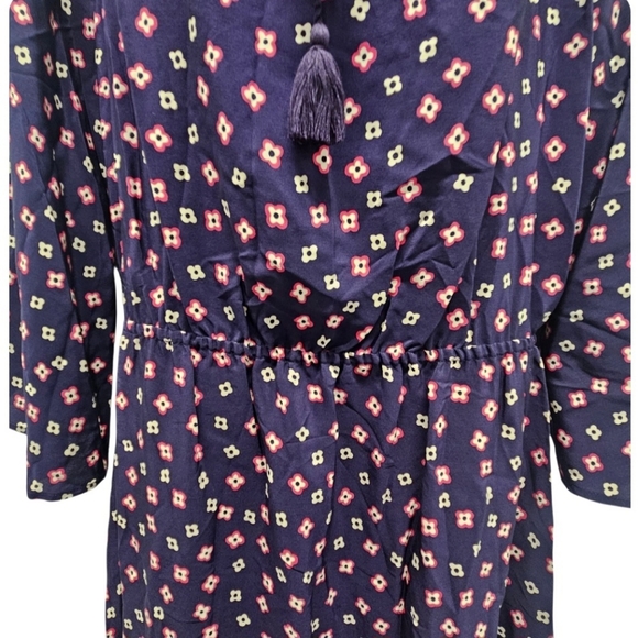 The Juicy Couture Black Label Silk Maxi Dress in navy with a floral allover pattern is a stylish and elegant choice for women. Made of luxurious silk material, this long dress features a beautiful floral allover print. Perfect for any occasion, this size medium dress exudes sophistication and charm, making it a versatile addition to any wardrobe.