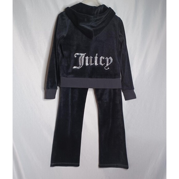 * Decoration: crystal rhinestone "Juicy" script logo across the back of the hoodie and across the back waist of the pants.