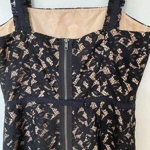 Juicy Couture Black Lace Tan Satin Lined Spaghetti Strap Zip Sheath Dress 4