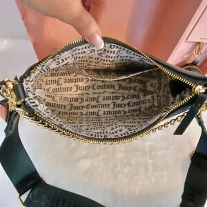 Juicy Couture Black Licorice Pink Rhinestone Handbag Bag & Heart Coin Purse Set