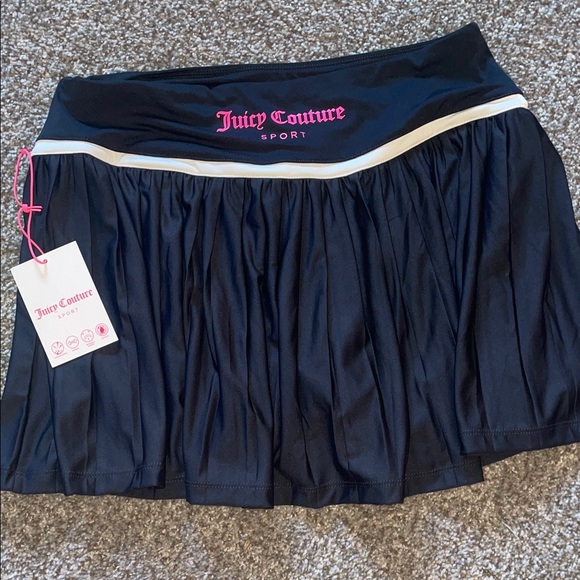 Chic black mini skirt by Juicy Couture. Features a vibrant pink logo. Stylish and versatile.