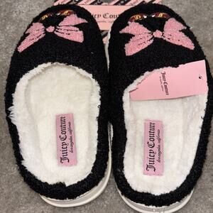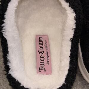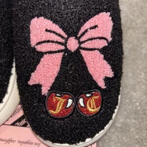 Juicy Couture Black Sherpa Pink Bow Coquette Slippers Large 8/9 Fluffy Slip On