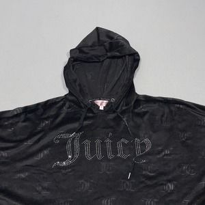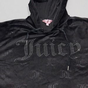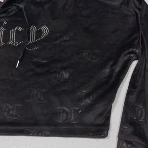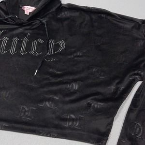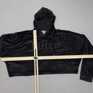 Juicy Couture Black Velour Logo Cropped Hoodie Size Medium Y2K Style