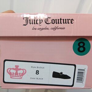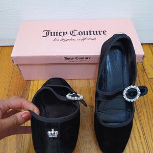 Authentic stunning Juicy Couture black velvet flats ship to you in the original pink Juicy Couture shoe box. They match with so many different outfits, especially for the winter holidays!!