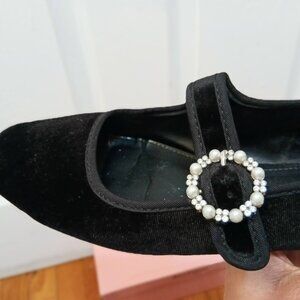 Juicy Couture Black Velvet Flats - Faux Pearl Diamond Silver