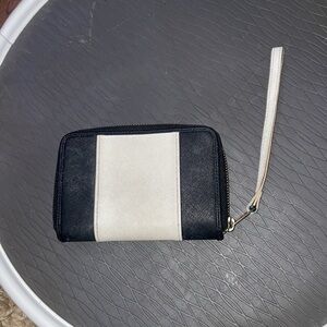 Juicy Couture Black & White Leather Zip Around Wristlet