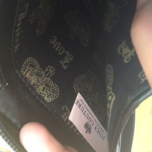 Juicy Couture Black & Gold Wallet with flower gem on side. Ingravings inside ( juicy princess & mad money) Section for change, cash & ID card.