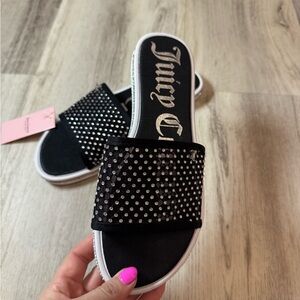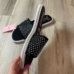 Elegant black sandals with sparkling silver accents. Perfect for casual wear.