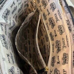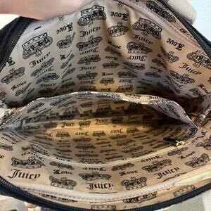 Juicy Couture Black velvet beige detail strap computer laptop messenger bag, outer zipper pocket, 2 inner compartments and inner zipper pocket. gold hardware accents. great conditions