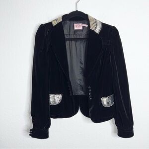 Juicy Couture Blazer Jacket Women Small Velvet Iridescent Sequin Black vintage