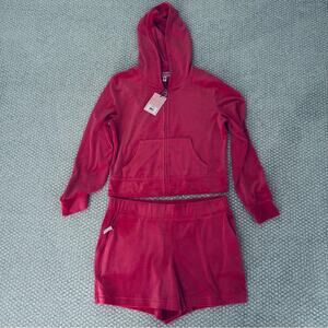 Juicy Couture Bling Velour Hoodie Short Set Pink Large