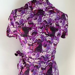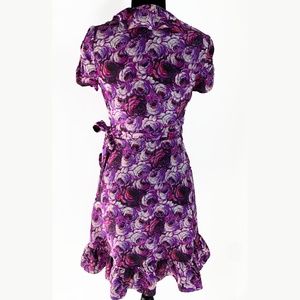 [Juicy Couture] Blooming Rose Silk Wrap Dress in Bright B Bloomin Purple. It's almost spring! Size 0. Beautiful ruffle edges with a true wrap front tie closure. Unlined. 100% silk. Dry clean only. Excellent condition; hardly worn. Care tag removed.