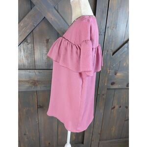 Juicy Couture Blouse Women's Medium Short Sleeve Ruffle Peephole button Back