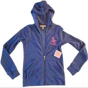 Juicy Couture Blue Full Zip MT Robertson Jacket Hooded Coat Girl’s Size 10 NWT