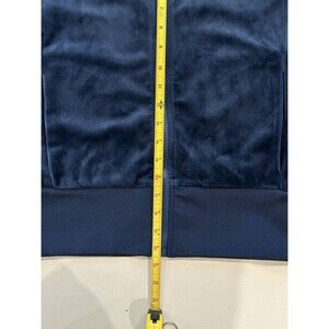 This Juicy Couture hoodie is a must-have for any 90s designer lover. The navy blue velour fabric is soft and comfortable, perfect for winter, fall, or spring. The full zip closure and hood make it easy to wear and versatile for any occasion, whether it's activewear or just a casual day out.