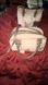 Elegant satchel with embossed logo. Heart charm detail. Dual handles for easy carrying.