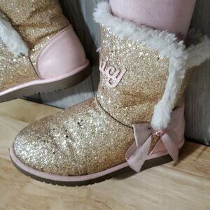 Juicy Couture Boots Bling Glitter Winter Snow Furry Gold Pink Big Girls SIZE 3