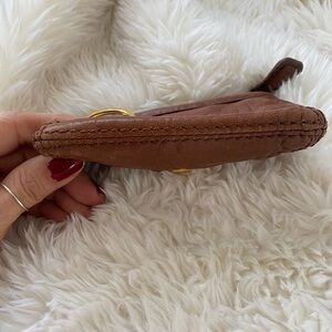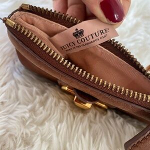 Juicy Couture Brown leather change purse/wallet with gold hardware. The leather is super soft and there is a zipper closure on top. In good preowned condition with some scratches on the gold hardware.