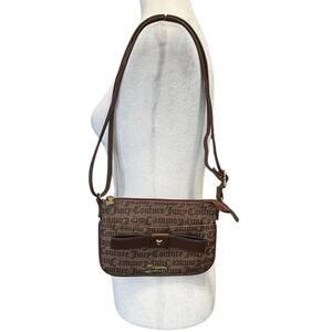 Juicy Couture Brown Monogram Logo Shoulder Crossbody Bag with Bow Accent Adjustable Strap