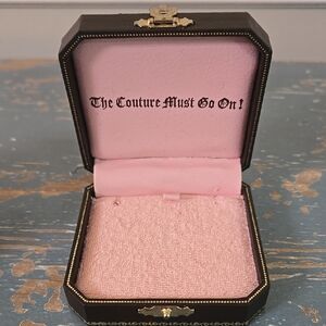 Elegant Juicy Couture jewelry storage boxes. Brown exterior with pink interior. Perfect for storing precious items. One box is for a charm, and the other is for a necklace. Smoke-free home.
