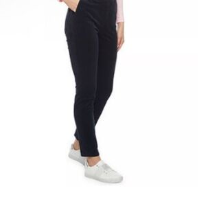 Chic black corduroy pants with comfort waistband. Skinny fit with slip pockets. Ideal for stylish outings.