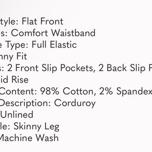 Juicy Couture California Skinny Stretch Corduroy Pants SZ 12 NWT