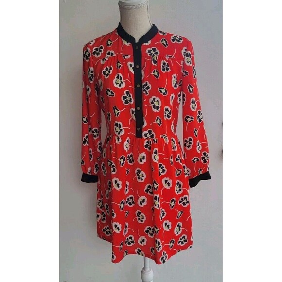 Juicy Couture Casual Floral Long Sleeves Mini Red Dress Size 2
