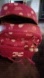 Juicy Couture backpack with cherry print and JC logo. Features a cherry charm with gold hang strap. Half gold chain and leather back straps.