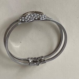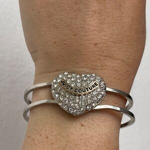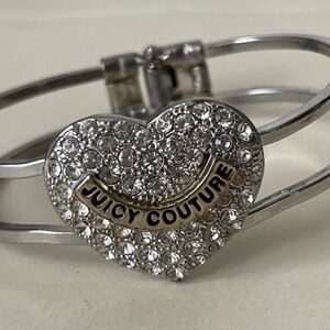 Juicy Couture Clear Crystal Heart Hinged, Clamper silver tone bracelet