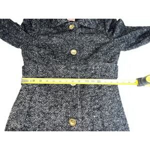 Juicy Couture Coat Sz 4 Black 100% Wool Tweed Mid-Length Gold Buttons Classic.