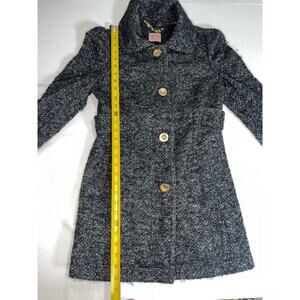 Juicy Couture Coat Size 4 Black 100% Wool Tweed Mid-Length Gold Buttons Classic