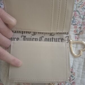 Elegant cream wallet by Juicy Couture. Features gold heart charm and accents. Perfect for stylish organization.
