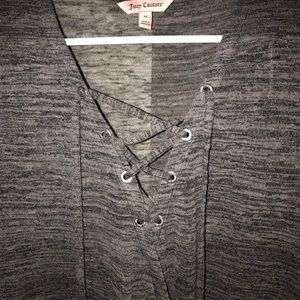 Juicy Couture grey criss cross t shirt. No tags on it but never worn. In brand new shape. Very trendy