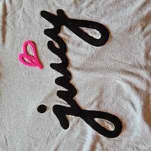 Woman's Juicy Couture Long-sleeve Crop Top Hoodie in Great Condition Overall. Gray with Embroidered Name and Heart Applique.