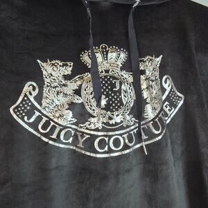 Juicy Couture Cropped Hoodie Pullover Velvet Velour Spellout Black Y2K Size M