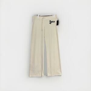 Juicy Couture Crown Fleece Wide Leg Jogger Pants Cream Large NWT $80 Retail