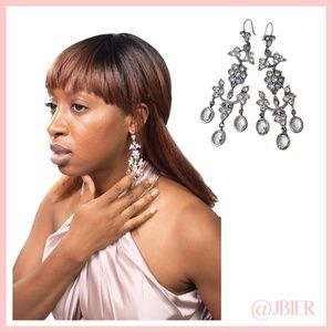 Juicy Couture Crystal Drop Earrings feature small and large rhinestone embellishments with a silver floral design. Style with our Debbie Dabble Rose Romper and Gucci Black Leather Peep Toe Pumps for a festive evening look. Excellent condition.