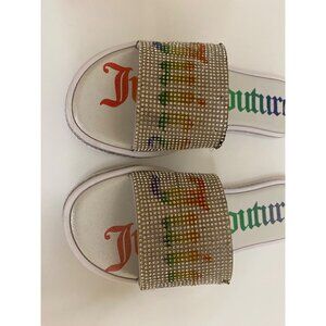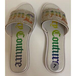 Juicy Couture Crystal Slip-On Slides Women Size 7 Clear Rainbow Sandal Flats Y2K