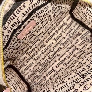 Juicy Couture Crystal Velour Pink Faux Leather Retro Vibe Satchel Crossbody Bag