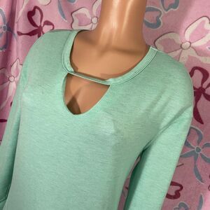 Juicy Couture Cutout Sweatshirt Shirt Top Aquamarine Size Extra Small XS in good used condition perfect for everday casual comfy wear Brand: Juicy Couture Design: Raglan long sleeves Color: Aquamarine Style: Front cutout detail at neckline Size: XS Measurements:Pit to Pit 18 inches,length 24 inches