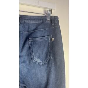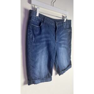 Juicy Couture Dark Wash Distressed Cuff Stretch Lightweight Bermuda Short Sz 10