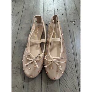 Juicy Couture FEFI Beige Mesh Ballet Flats w/ Rhinestones