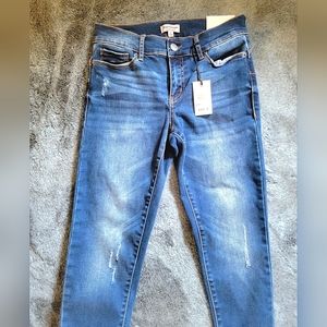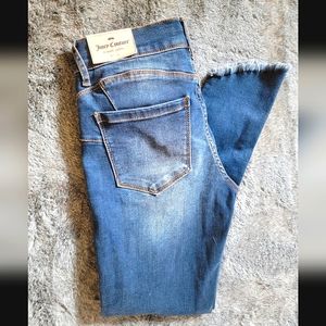 NWT Juicy Couture Size 2 Flaunt It Distressed Skinny Jeans with Raw Asymmetrical Hems. No Flaws. Stretch Jeans Contour your figure very nicely!