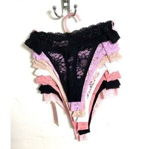 Juicy Couture Floral Lace Thong Size XL Crystal Rhinestone Trim 7 Pack Pink Black White, please see pictures for more details.