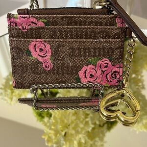 🌺Juicy Couture Floral Painted Keychain Card Case w/Coin Zip Compartment 🌺