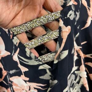 Title: Juicy Couture Floral XL Blouse Silky Flowy Peek a Boo Cleavage Stone Encrusted